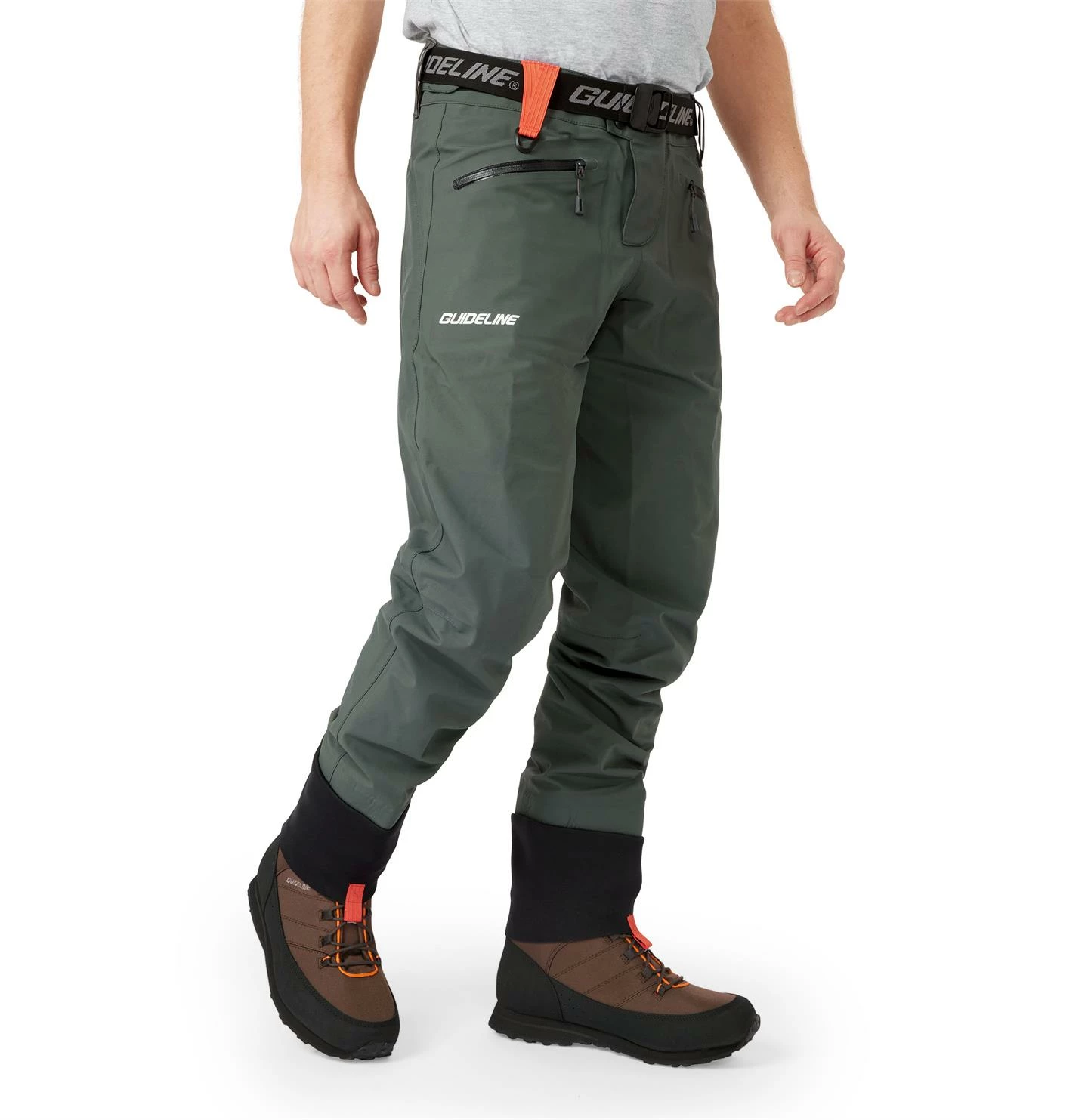 Light, flexible and strong neoprene gravel guards make sure no gravel or sand enters into the wading boots and cause unneccesary wear on the high-density neoprene socks. Laxa waist waders are equipped with two water-resistant horizontal pockets and a zippered front fly. There is a D-ring on the belt loop on the right side of the front zipper. The elastic and adjustable waist area has a slightly elevated back and features an elastic wading belt as well. This makes these waders very comfortable and easy to adjust for the right fit. The color is Algae Green.