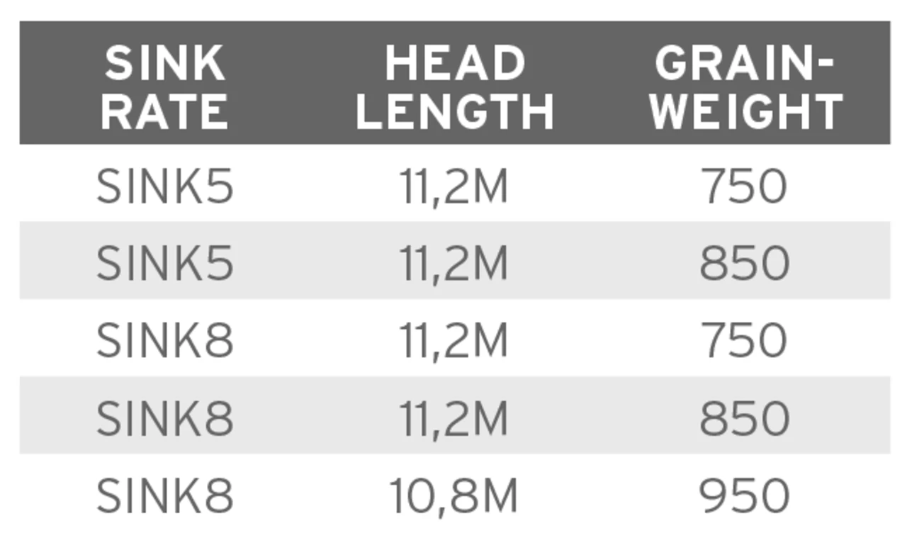 The fastest sinking fishfinders on the market – period! The UST Express Sink is a series of full sinking lines with weight / sink rates from 750grain-Sink 5 to 950grain-Sink 8.