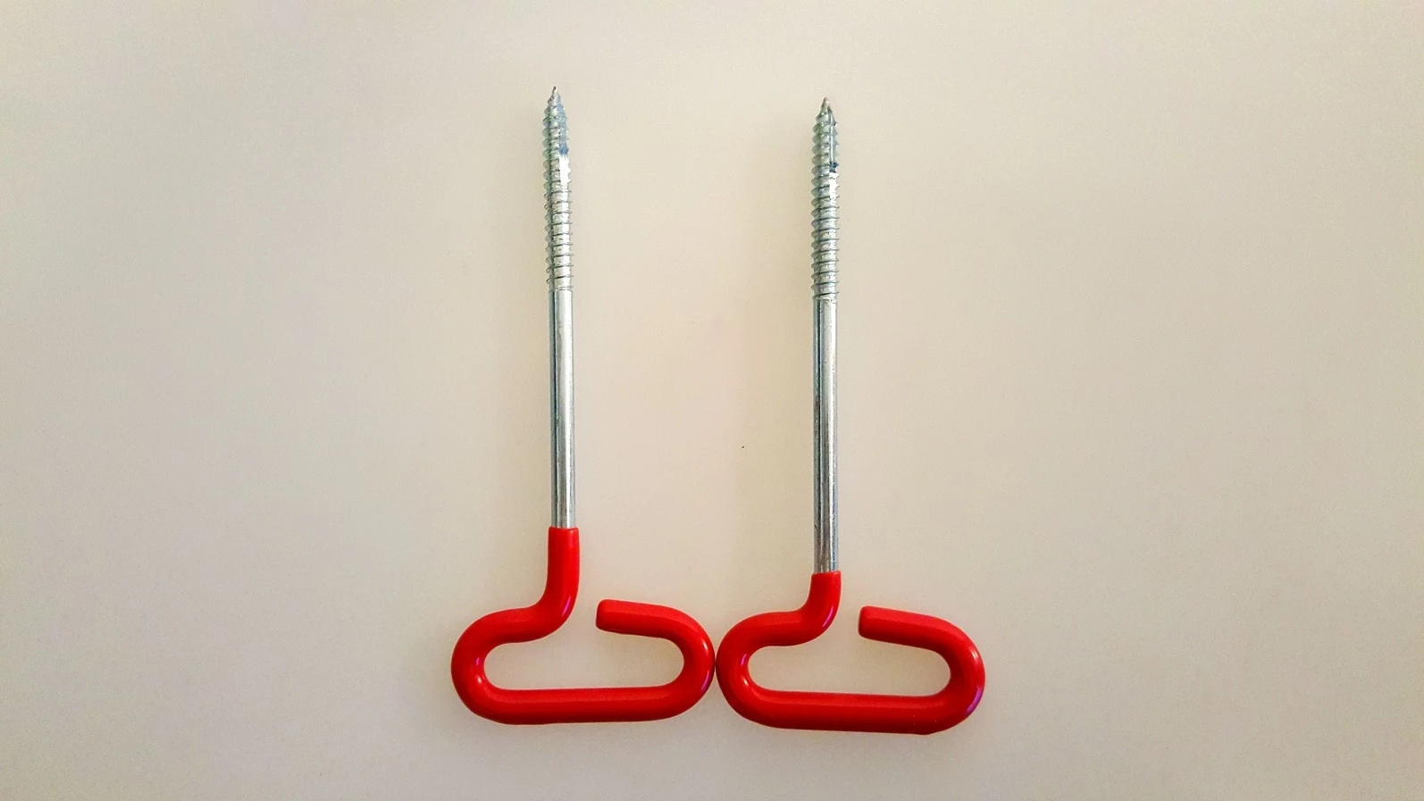 Wigglerin jääruuvit pilkkitelttan paikalleen kiinnittämiseksi, pakkauksessa kaksi jämerää ruuvia.